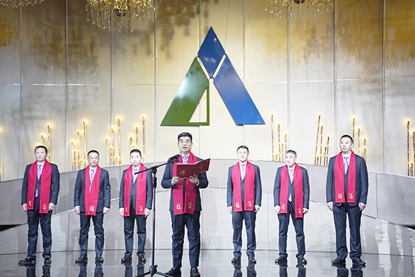 2025年,建筑業(yè)的困難前所未有,市場挑戰(zhàn)前所未有、達(dá)欣人的堅韌不拔同樣前所未有。并非只有山頂上的高歌才值得稱頌,那些奔跑時急促的喘息,疲憊時沉重的呼吸,遲疑但終究響起的腳步聲,都值得我們看見、肯定。為此,集團(tuán)對2025年工作中做出突出貢獻(xiàn)的先進(jìn)團(tuán)隊和個人進(jìn)行了表彰獎勵。集團(tuán)總經(jīng)理王邦國宣讀2025年度表彰決定。