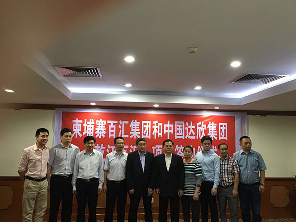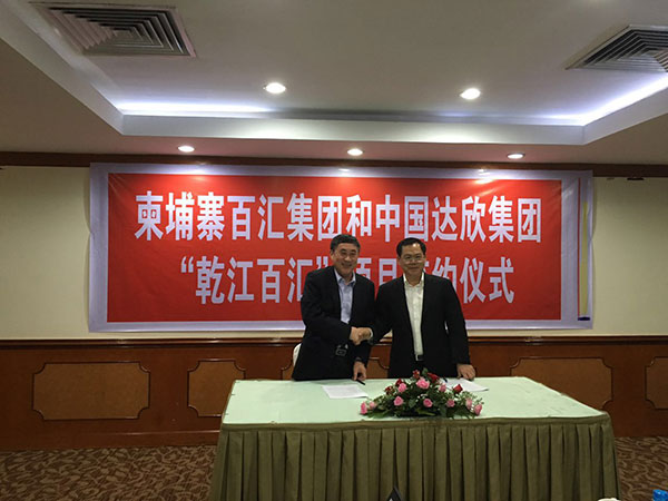 達欣集團第一個海外項目——乾江百匯于4月19日在柬埔寨金邊大酒店簽約,該項目是由柬埔寨百匯投資集團與達欣集團以共同合作、共同開發(fā)的新型商業(yè)模式來運營。柬埔寨百匯集團林財通勛爵、林寶庭總經(jīng)理與達欣集團董事長馬和軍、黨委書記劉厚純、副總經(jīng)理徐仁忠、上海佩里建筑規(guī)劃設(shè)計公司創(chuàng)始人鄭翊等共同見證了項目的簽字活動。