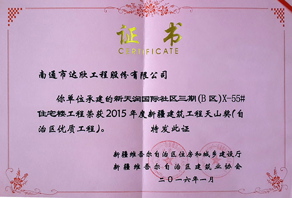 5月30日,從新疆建筑業(yè)協(xié)會組織召開的年度大會上獲悉,由第十一工程公司承建的新天潤B03—55號,以高標(biāo)準(zhǔn)、高質(zhì)量施工榮獲新疆維吾爾自治區(qū)優(yōu)質(zhì)工程“天山獎”。