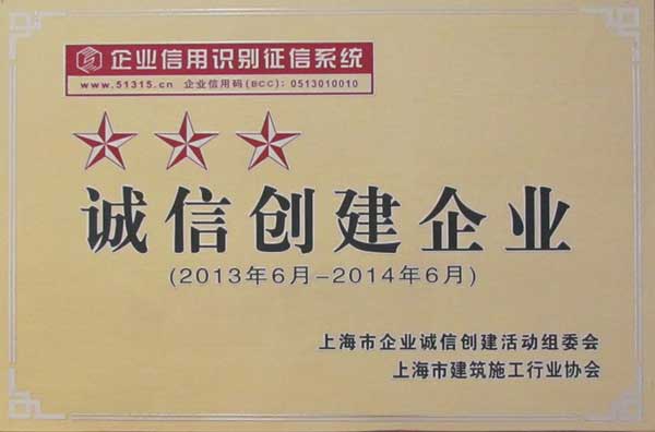 第一工程公司首獲上海市“三星級(jí)誠(chéng)信創(chuàng)建企業(yè)”稱(chēng)號(hào)