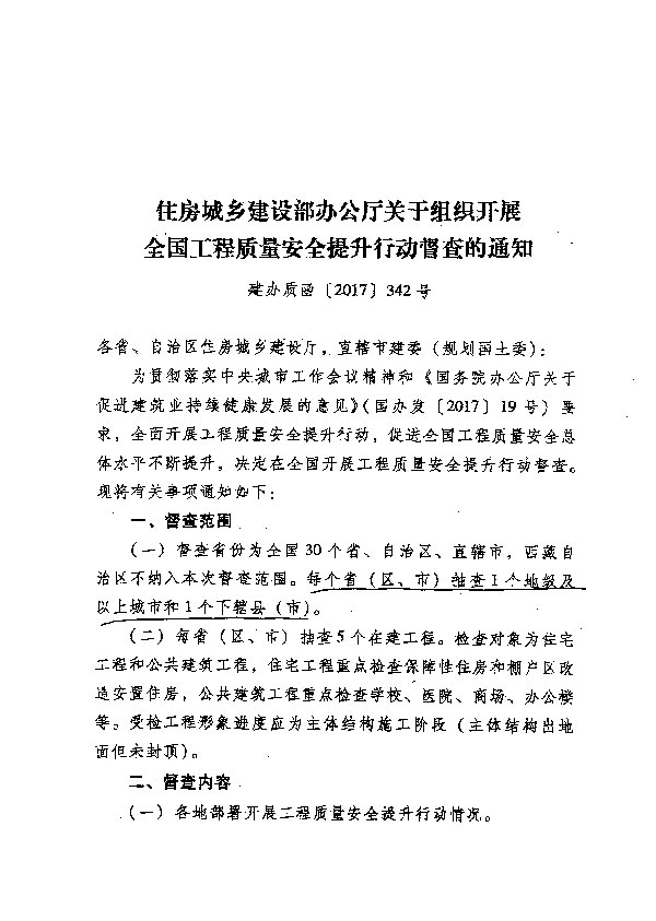 關(guān)于組織開展全國工程質(zhì)量安全提升行動(dòng)督查的通知