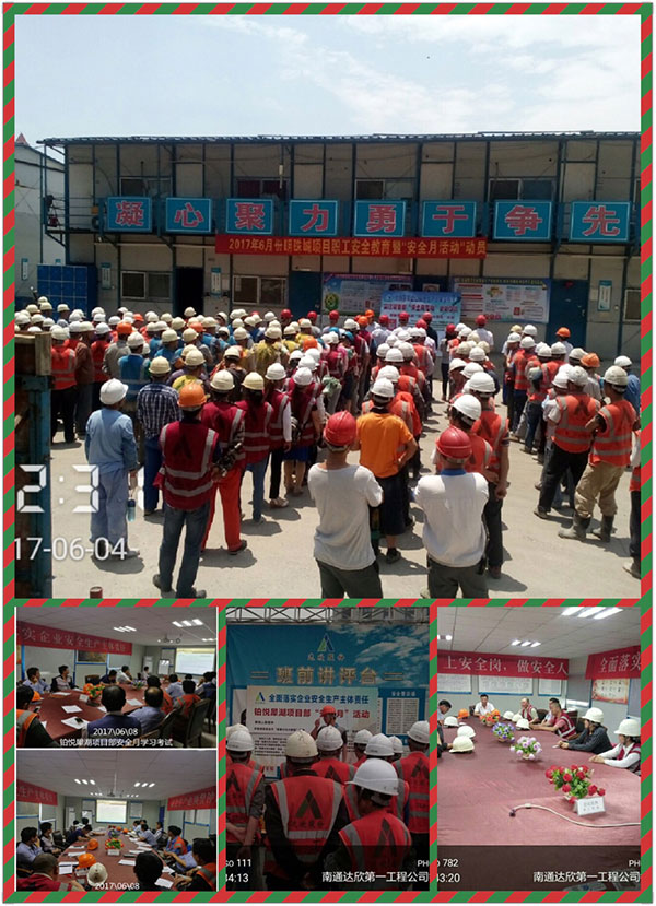 為貫徹落實集團公司《關(guān)于開展2017年“安全生產(chǎn)月”和“安全生產(chǎn)萬里行”活動的通知》文件精神,第一工程公司于6月2-7日,分別在各項目部召開了“安全生產(chǎn)月”活動宣貫會,要求各項目部通過多種形式,扎實開展安全生產(chǎn)月活動,全面落實企業(yè)安全生產(chǎn)主體責(zé)任。