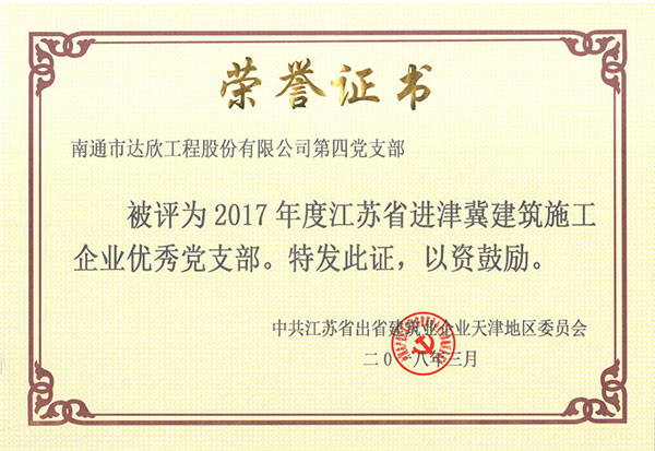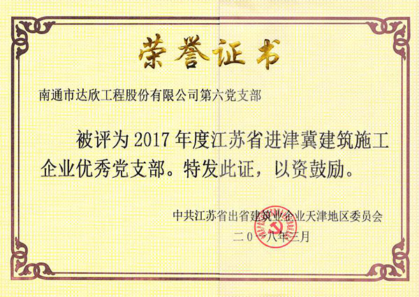 公司在冀連續(xù)六年榮獲“江蘇省出省施工先進(jìn)企業(yè)”