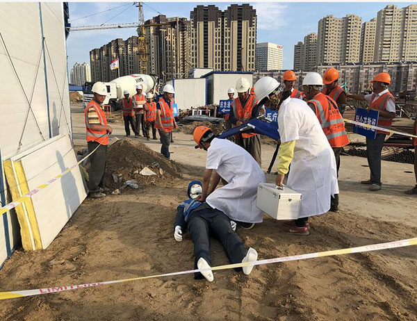 此次應(yīng)急救援預(yù)案演練模擬施工工人從高處墜落?!耙馔狻卑l(fā)生后,現(xiàn)場(chǎng)負(fù)責(zé)人立即組織人員撤出危險(xiǎn)區(qū),并在匯報(bào)情況后聽從指示在第一時(shí)間啟動(dòng)應(yīng)急預(yù)案。在應(yīng)急總指揮的指令下,救援小組迅速就位,并有序展開警戒護(hù)衛(wèi)、技術(shù)排險(xiǎn)、現(xiàn)場(chǎng)搶險(xiǎn)、醫(yī)療救護(hù)等各項(xiàng)救援工作,使險(xiǎn)情得到有效控制,隨后,傷員被送往醫(yī)院進(jìn)行救治。