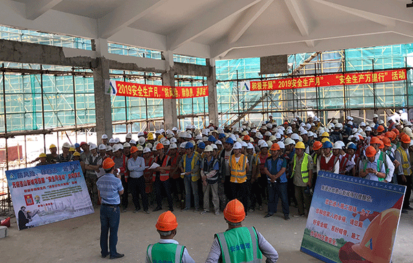 項目部認真組織精心策劃,項目負責人馬寧偉從“強力推動、精心組織、狠抓落實、確保安全”四個方面進行動員,項目部將集中開展“防風險、除隱患、遏事故”主題宣講、安全宣傳咨詢、事故警示教育、應(yīng)急救援演練等系列活動。同時舉行了項目全體施工人員安全月簽名活動,并現(xiàn)場宣布“安全生產(chǎn)月”活動啟動。會上要求,項目始終貫徹執(zhí)行集團“安全高效鑄精品 環(huán)保誠信創(chuàng)輝煌”的安全管理方針,把項目安全生產(chǎn)擺到更加突出、更加重要的位置,動員全體員工以“安全生產(chǎn)月”活動為契機,以活動促工作,以活動促安全,把全體員工的安全意識提升到一個新高度,把無錫惠山新城項目的安全工作推向一個新臺階。
