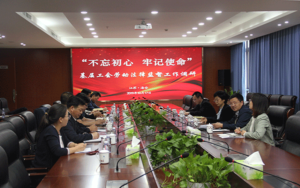江蘇省總工會(huì)法律工作部主任科員劉為偉、 江蘇省總工會(huì)法律工作部副主任科員趙萌萌、 南通市總工會(huì)主席助理陳志祥、南通市總工會(huì)法律工作部副部長(zhǎng)龔亞樂陪同調(diào)研。