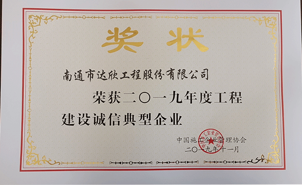 信筑天下▏達(dá)欣集團(tuán)榮獲“2019年度工程建設(shè)誠(chéng)信典型企業(yè)”