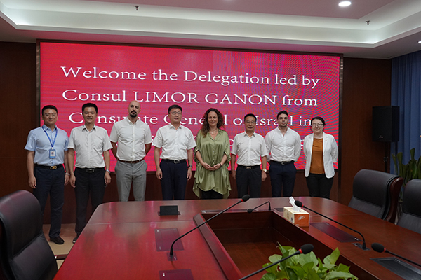 8月4日下午,以色列駐上??傤I(lǐng)事館領(lǐng)事葛麗茉LIMOR GANON、總領(lǐng)事高級顧問尤西YOSSI BEN SHITRIT、領(lǐng)事助理JOSEPH ALFASA 、喬瑩青、陸彥璇一行蒞臨集團(tuán)進(jìn)行商務(wù)訪問。海安市副市長張?jiān)海0彩猩虅?wù)局副局長史遐兵,集團(tuán)黨委書記、副董事長劉厚純,常務(wù)副總經(jīng)理王邦國陪同接待。