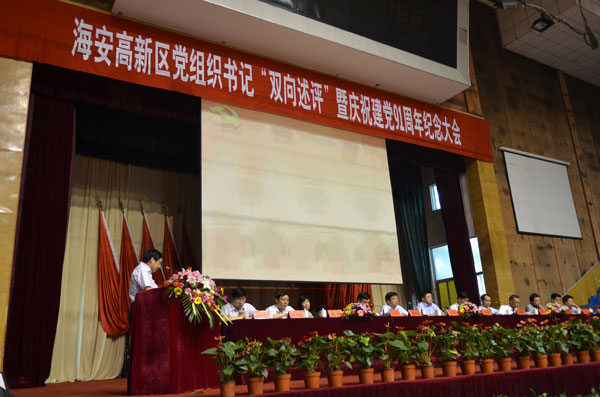 6月27日,海安高新區(qū)黨組織書記“雙向述評”暨慶祝建黨91周年大會在我縣海中體藝館舉行。縣委常委、海安高新區(qū)黨工委書記張亞曦及全體黨政負(fù)責(zé)人、各局(辦)、各街、村(居)全體人員、各黨(總)支部書記、全體縣、鎮(zhèn)黨代表參加了會議。
