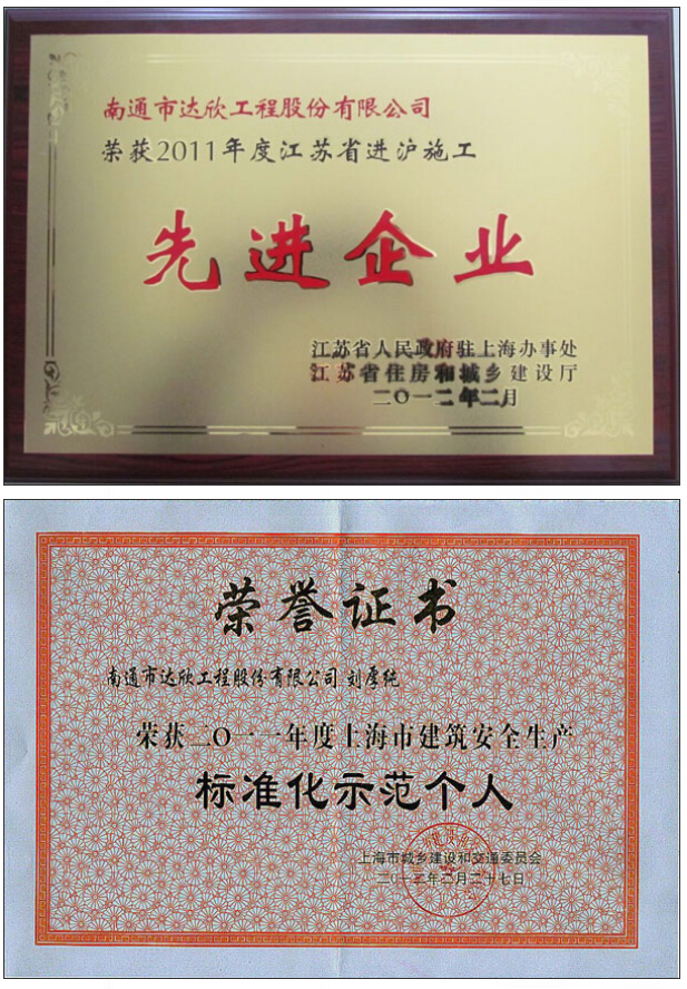 第一工程公司連續(xù)五年榮獲江蘇省進(jìn)滬施工先進(jìn)企業(yè)
