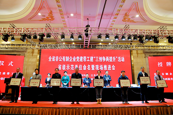 11月18日,江蘇省非公有制企業(yè)黨建帶工建“三創(chuàng)爭(zhēng)兩提升”活動(dòng)省級(jí)示范單位命名暨現(xiàn)場(chǎng)推進(jìn)會(huì)在南通召開(kāi)。會(huì)上,對(duì)100家江蘇省非公有制企業(yè)黨建帶工建“三創(chuàng)爭(zhēng)兩提升”活動(dòng)示范單位進(jìn)行了命名,達(dá)欣集團(tuán)榜上有名,集團(tuán)副總經(jīng)理、工會(huì)主席溫鶴華作為單位代表上臺(tái)接受授牌。