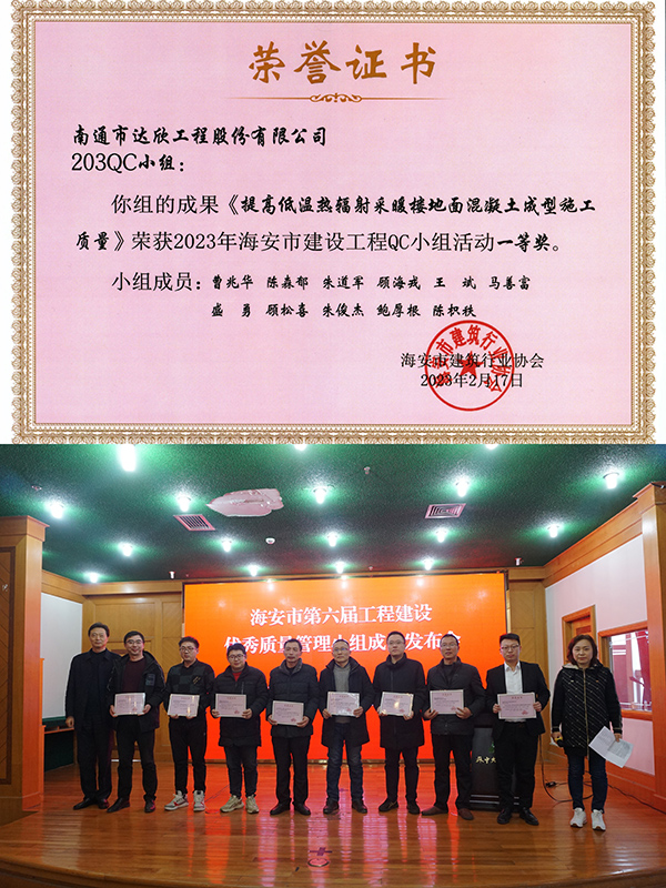 2月17日,海安市建筑業(yè)協(xié)會(huì)舉辦了海安市第六屆工程建設(shè)優(yōu)秀質(zhì)量管理小組成果發(fā)布會(huì),集團(tuán)選送的成果《提高低溫?zé)彷椛洳膳瘶堑孛婊炷脸尚褪┕べ|(zhì)量》榮獲一等獎(jiǎng)。集團(tuán)技術(shù)質(zhì)量部、BIM中心經(jīng)理王賽作為評(píng)委參與成果點(diǎn)評(píng),集團(tuán)技術(shù)質(zhì)量部、第二工程公司和第九工程公司相關(guān)技術(shù)人員參加活動(dòng)。