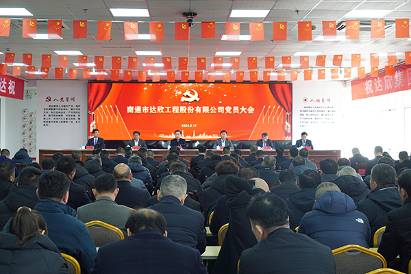 2月17日上午,集團在黨群活動中心召開2024年黨員大會。選舉產生了中共南通市達欣工程股份有限公司新一屆黨委和紀委領導班子。海安市委常委、高新區(qū)黨工委書記郝三旺,海安市委組織部常務副部長、“兩新”工委書記、黨建辦主任吳蘭,高新區(qū)黨工委副書記曹驥,胡集街道黨工委書記孫堅等領導親臨現(xiàn)場指導。