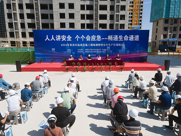 6月20日,由烏魯木齊市米東區(qū)建設(shè)局主辦的2024年米東區(qū)標(biāo)準(zhǔn)化施工現(xiàn)場觀摩暨安全生產(chǎn)月現(xiàn)場會(huì)在第十一工程公司承建的會(huì)展吾悅廣場五期項(xiàng)目舉行。米東區(qū)副區(qū)長馬連營,區(qū)應(yīng)急管理局局長鄒波,區(qū)建設(shè)局局長、黨組副書記姜磊;卡子灣街道辦事處主任周疆艷,區(qū)質(zhì)量安全監(jiān)督站站長宮強(qiáng),區(qū)質(zhì)量安全監(jiān)督站全體工作人員,第三方專家以及全區(qū)建設(shè)、監(jiān)理、施工單位負(fù)責(zé)人共計(jì)200余人、60多家建筑施工單位代表參加了此次觀摩會(huì)。