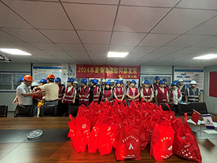 6月29日下午,第三工程公司在江城首邑項(xiàng)目部舉行夏季高溫慰問活動(dòng)。第三工程公司副經(jīng)理吉祥和工會(huì)負(fù)責(zé)人丁連勇親自為全體員工送上了防暑慰問品,表達(dá)了公司對員工的關(guān)心和關(guān)愛。