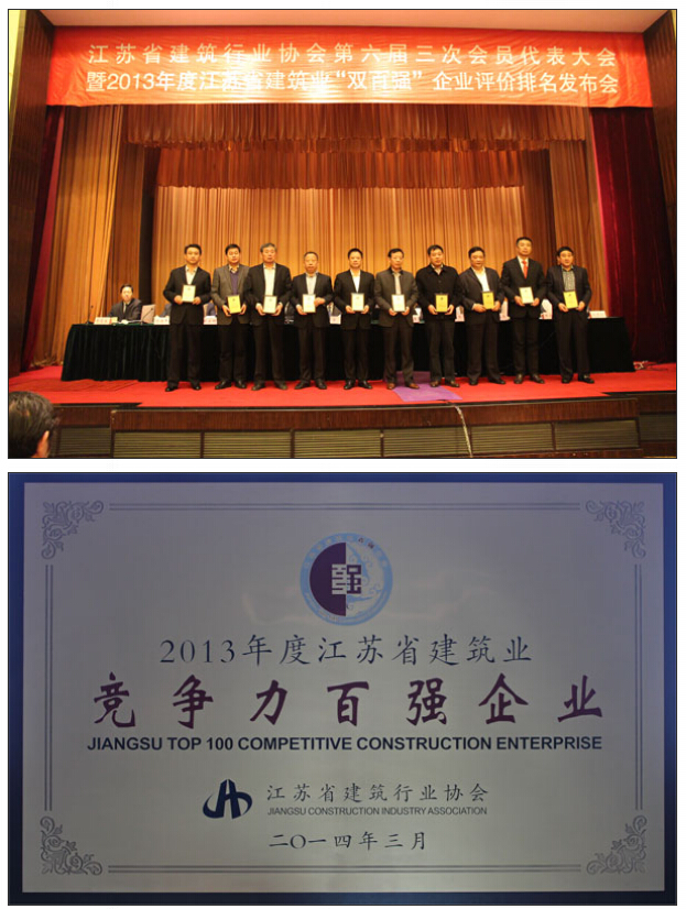 經(jīng)評審委員會初審、統(tǒng)計(jì)、公示、核審,南通市達(dá)欣工程股份有限公司入選2013年度江蘇建筑業(yè)企業(yè)競爭力百強(qiáng),排名第35位,與2012年度相比,公司綜合競爭力穩(wěn)步提升,公司董事長馬和軍作為江蘇建筑業(yè)優(yōu)秀企業(yè)家代表上臺領(lǐng)獎。江蘇建筑業(yè)企業(yè)“雙百強(qiáng)”評比是根據(jù)企業(yè)經(jīng)營規(guī)模、資產(chǎn)規(guī)模、盈利能力、員工構(gòu)成、科技進(jìn)步、管理水平、精神文明等八個指標(biāo)體系綜合評比產(chǎn)生的,它代表了企業(yè)的綜合競爭力水平。