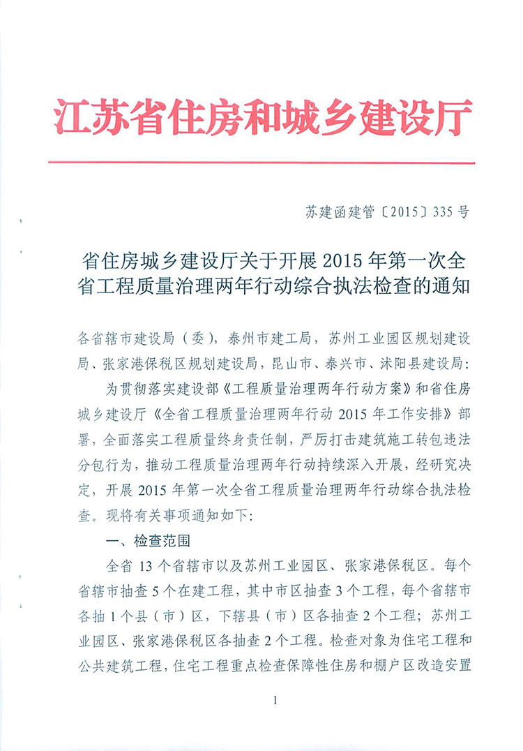 省住房城鄉(xiāng)建設(shè)廳關(guān)于開展2015年第一次全省工程質(zhì)量治理兩年行動綜合執(zhí)法檢查的通知