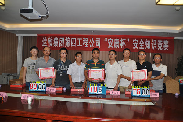 各項(xiàng)目部在建筑物上懸掛安全生產(chǎn)宣傳標(biāo)語24條幅;組織廣大職工觀看建筑施工中的事故案例,結(jié)合施工過程中的實(shí)際情況進(jìn)行分析點(diǎn)評;對全體職工進(jìn)行了血壓檢測;舉行了“安全生產(chǎn)月”主題簽名活動。工程公司于6月8、9日在留村項(xiàng)目部組織所有在崗管理人員進(jìn)行了安全知識培訓(xùn)。6月22日工程公司舉行了“安康杯”安全知識競賽,24名選手分8組參賽。經(jīng)過必答題、搶答題、附加題3個環(huán)節(jié)的比拼,最終眾美綠都項(xiàng)目部以領(lǐng)先笫二名25分的優(yōu)勢獲得冠軍,拉斐小鎮(zhèn)、留村莊園A區(qū)分獲二、三名。通過以上活動的開展,進(jìn)一步提高了廣大職工的安全生產(chǎn)知識和安全意識,確保安全生產(chǎn)。