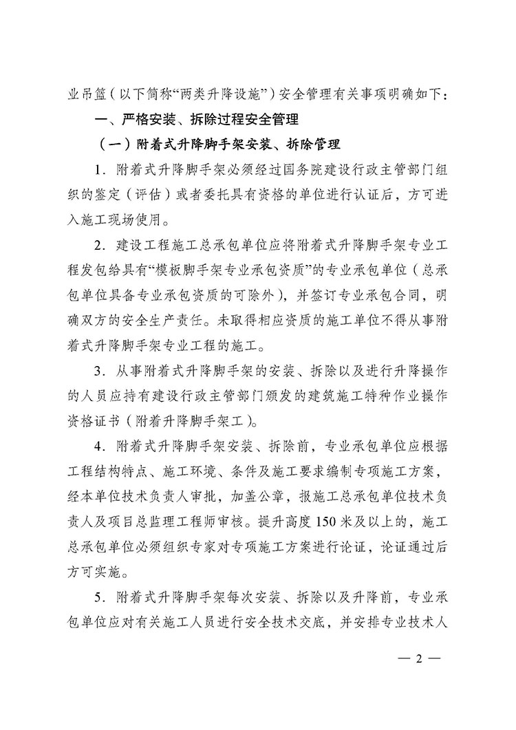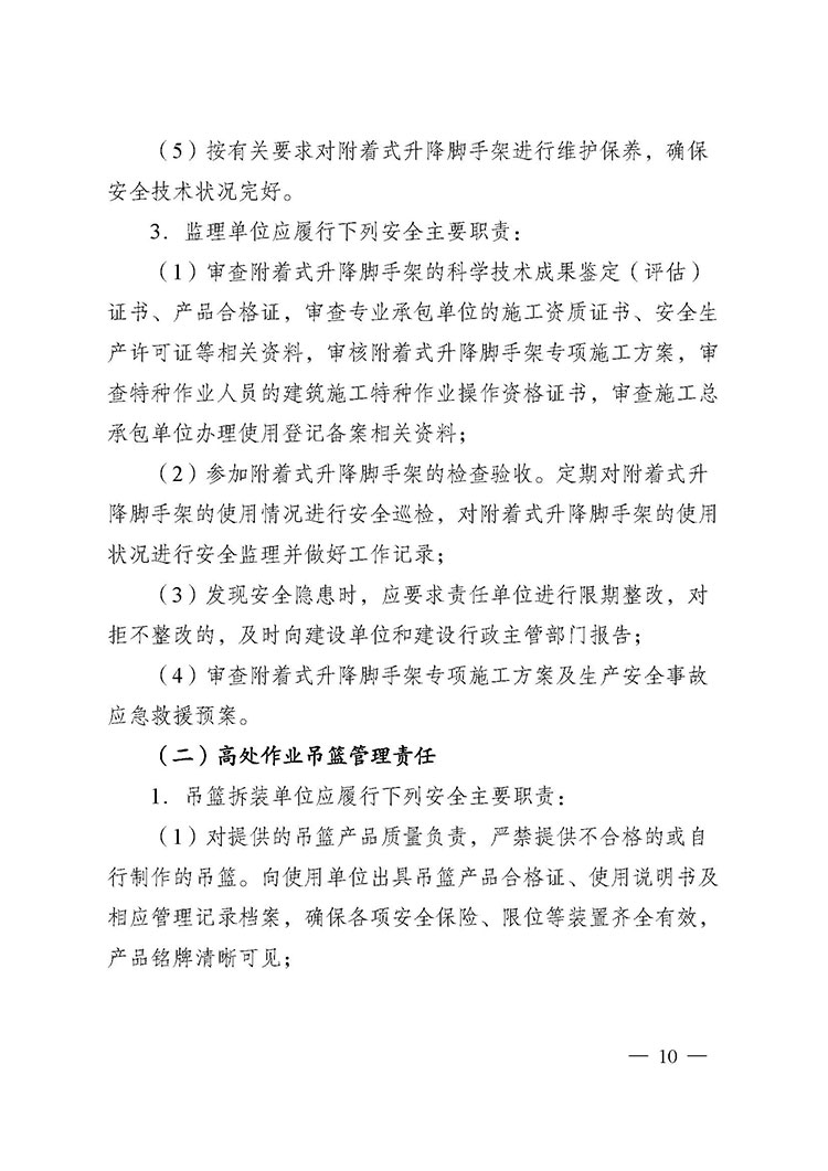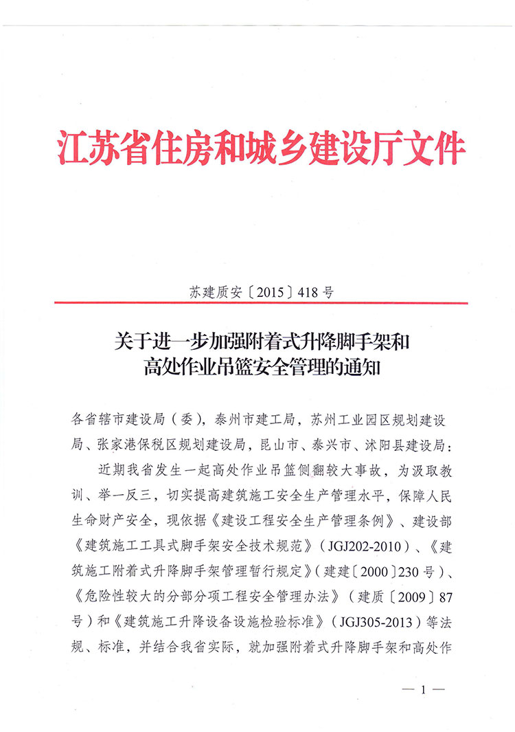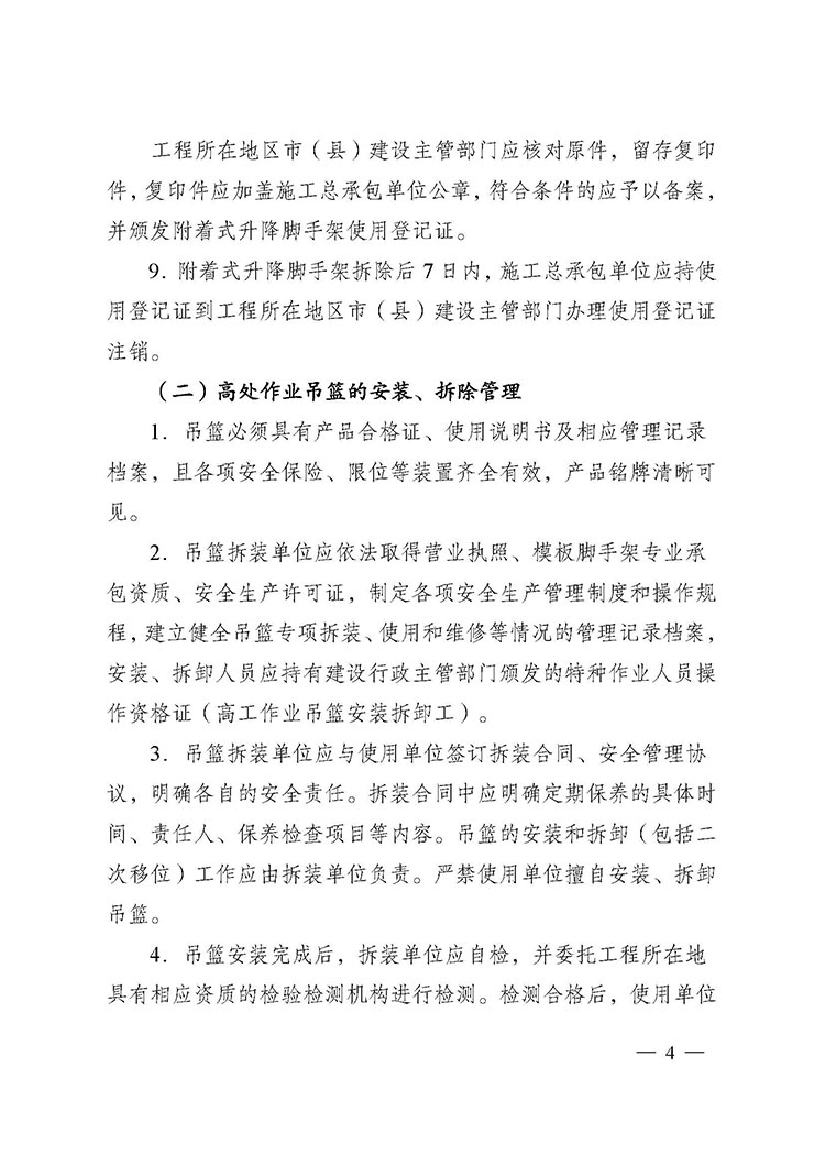關(guān)于進(jìn)一步加強附著式升降腳手架和高處作業(yè)吊籃安全管理的通知